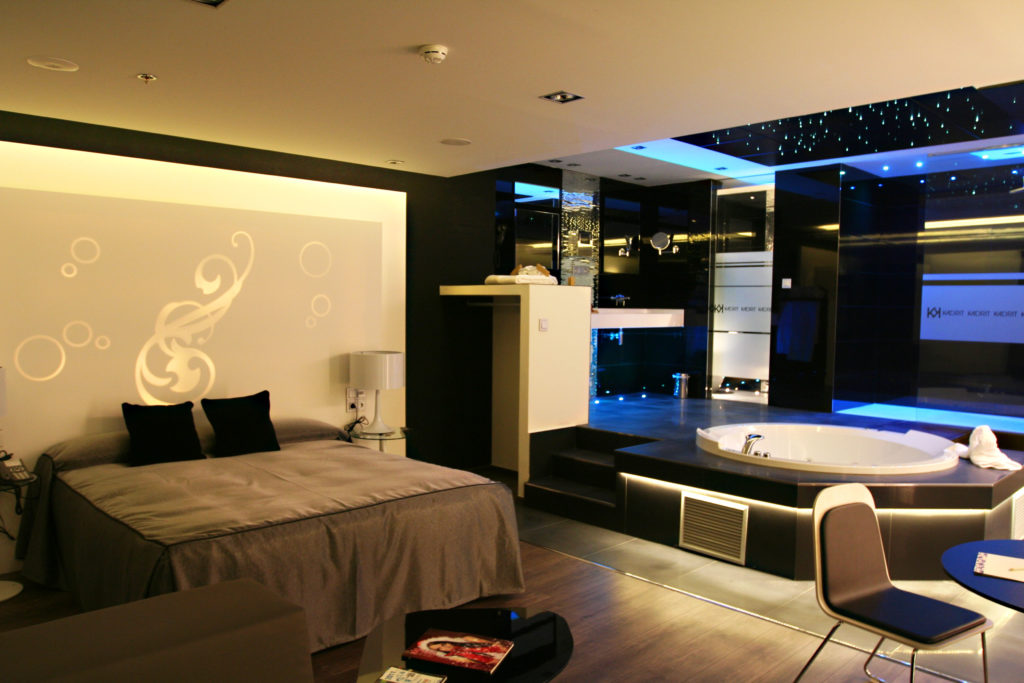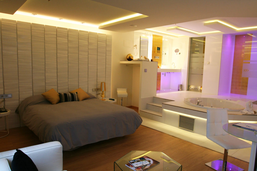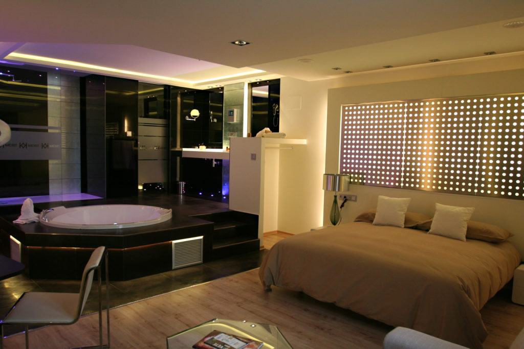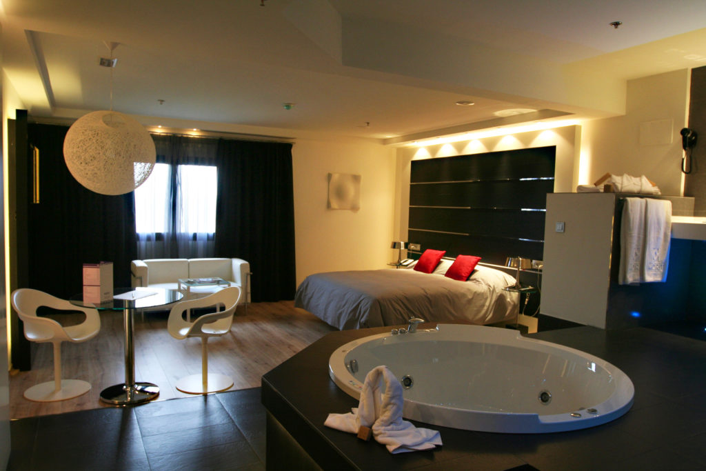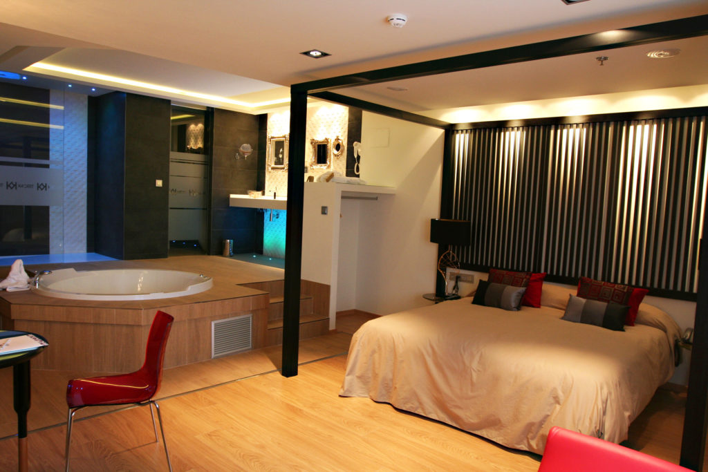 En las Suites Deluxe, el espacio nos permite ofrecerle una emulsión de sensaciones, sorprendiéndole tanto por la calidez como por la novedad de sus componentes. En todas estas Suites, tanto el jacuzy como la zona de aguas, quedan totalmente integradas en la habitación, consiguiendo una agradable sensación de amplitud. Se podrán generar los mejores escenarios de lujo, confort y exclusividad debido a los diferentes mobiliarios, iluminación y decoración.